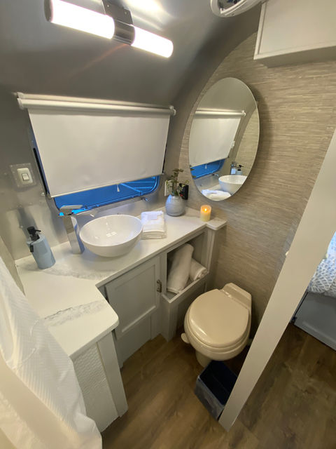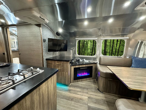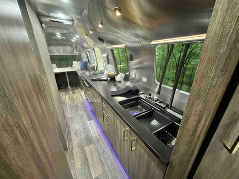 Grandpaw had been resting peacefully in a remote pasture in southern Texas, soaking up the sun, the breeze, and listening to the sounds of cattle, deer, and wild turkeys. Grandpaw had provided a life time of memories for Tony and Laurie, whom both decided it was time to resurrect him and provide cherished lasting memories for the next generation of their family. Tony and Laurie went all out , deciding to engage the Team at Airdream to execute a total shell-off restoration, which consisted of disassembling Grandpaw completely down to the frame and then building back with everything new, while preserving his vintage heritage exterior look and charm; but, with the interior comforts of modern technology, including a high fidelity blue tooth controlled 4 speaker with and additional two speakers curbside exterior with 3 zone control powered by amplifier and enhanced with subwoofer!
